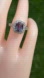Halo style setting. Very sparkly. The Alexandrite center stone is generally a dark purple/navy blue color as the stone moves. In natural sunlight, dark teal can also been seen. Stunning. This purchase will also go through Poshmark certification to verify the claims in this listing. Pictures cannot do this ring justice.