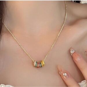 14kt gold plated dainty multicolored 7 ring luxury designer style neckla…