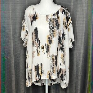 14th & UNION CREAM BLACK HI LO SHORT SLEEVED BLOUSE Medium