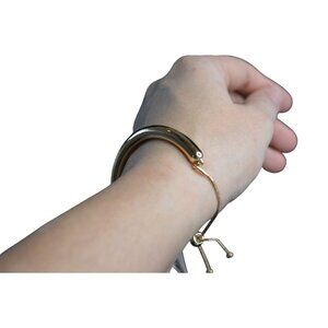 This stylish 14th & Union bangle combines a sleek gold tone with the convenience of an adjustable design, offering a comfortable and chic fit for any wardrobe.