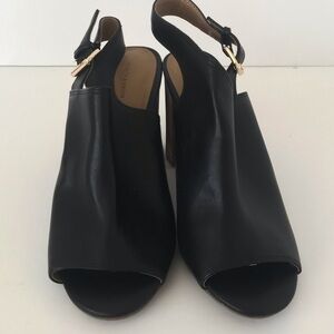 14th & Union Asher Black Slingback Open Toe Stacked Heel Booties • Size 8.5 🗣
