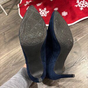Versatile blue boots, about 3 inch heels. I've worn them a handful of times and they hold up very well.