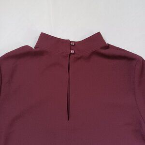 14th & Union Dressy Top Blouse Shirt Dark Red Bell Sleeve Mock Neck Boxy Size S