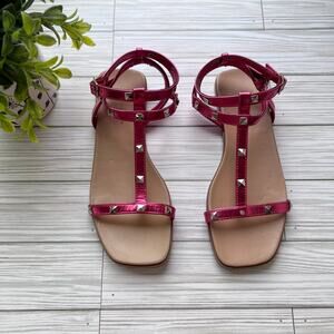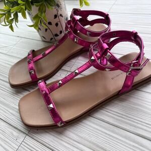 14th & Union FINLEY Square Toe Metallic Pink Studded Sandals Size: 5.5 FLAW