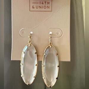 NWOT 14th & Union earrings. Features gold accents with a sleek grayish white centerpiece. Nickel free