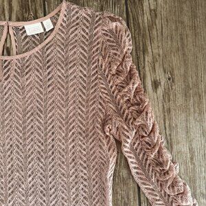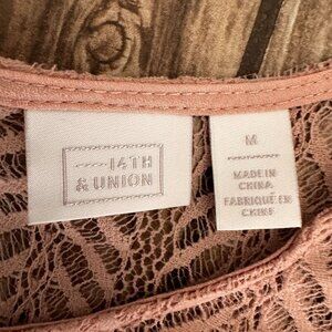 14th & Union Lace Top Shirt Womens M Ruched Sleeves Delicate Coquette Sheer