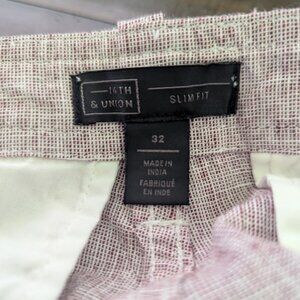 14th & Union Men’s Slim Fit Linen Blend Shorts – Size 32 – Burgundy Brick/White