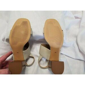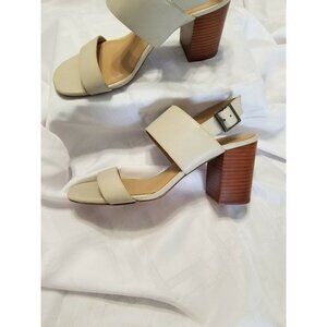 14th & Union Meren Block Heel Double Strap Bone Faux Leather Sandal Size 8M