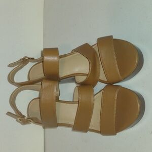 14th & Union Narissa Slingback Wedge Sandal Cognac Brown Women’s Shoes size 7.5
