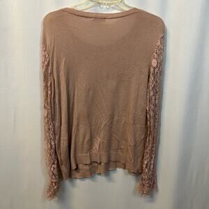 14th & Union Pink Lace Sleeve Bell Cuff Scoop Neck Cotton Blend Sweater Large