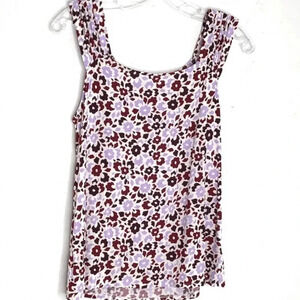 14th & Union Shirred Shoulder Tank Top Floral Tee M