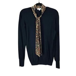 14th & Union Womens Medium Black Sweater Leopard Print Tie Neck Career Pullover