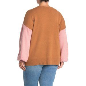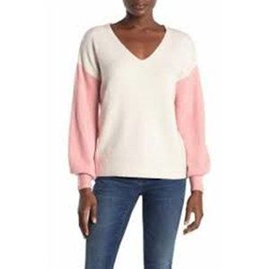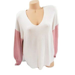 14th & Union Womens Sweater Multicolor Colorblock Knit V-Neck Long Sleeves