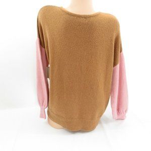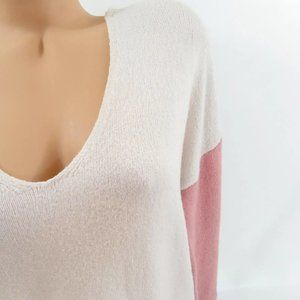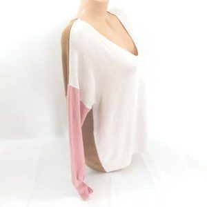 14th & Union Womens Sweater VNeck Colorblock Cream Tan Pink Size Petite Large PL