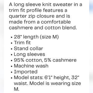 14th and Union Cotton Cashmere Quarter Zip Trim Fit Sweater