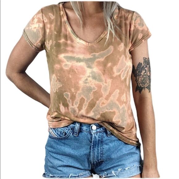 14th and Union bleach dye tie dye earth toned t-shirt.