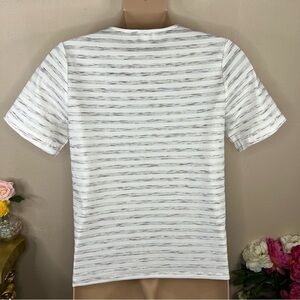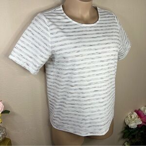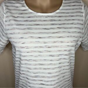 14w CJ Banks Ivory White Striped Short Sleeve Top Stretch 0x Tee T Shirt