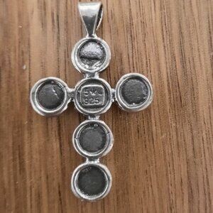 1.5" Auth Navajo Southwest 925 Silver Cross Necklace Pendant Real Turquoise 5* c