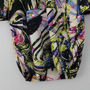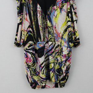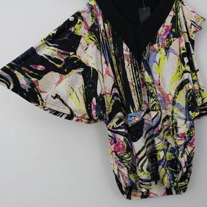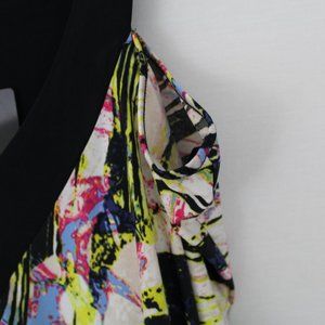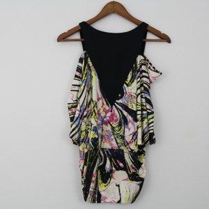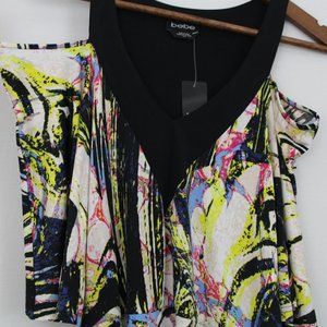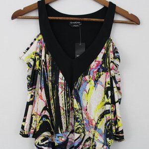 Bebe Black & White Cold Shoulder V-Neck Top w/ ruching on the lower sides S