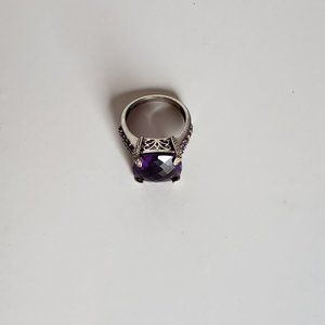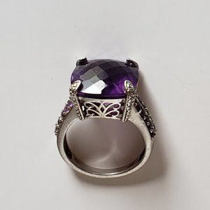 Beautiful gently used sterling silver ring topped with a square 15 carat genuine amethyst. Size 7 3/4