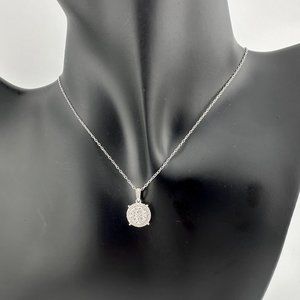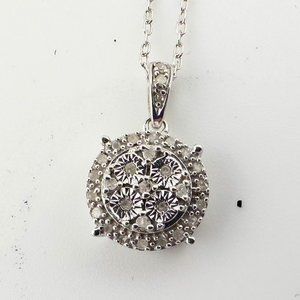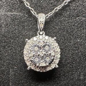 1/5 Carat Diamond Brilliance Diamond Cluster Pendant w Chain - Sterling Silver