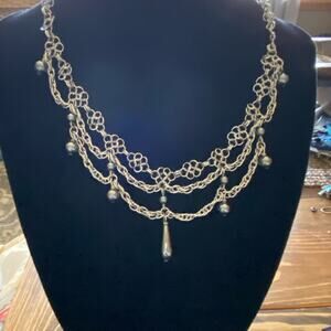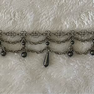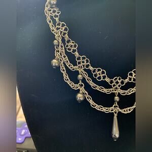 15” Chandalier Necklace with Hematite Beads Murder Mystery Gothic Copper. Beautiful necklace on the clasp it says solid copper.