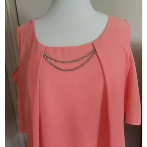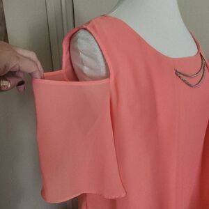 ▪︎DESCRIPTION: Peachy flowy cold shoulder blouse with chain decoration. Elbow length sleeves
