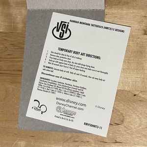 15 Disney Hannah Montana (Miley Cyrus) Temporary Tattoos. Each temporary tattoo is protected in a cardboard sleeve.