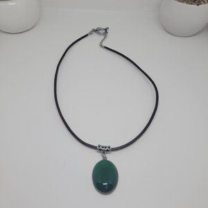 15" Distressed Leather Necklace with Emerald Green Pendant and toggle clasp