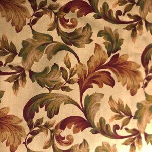Burgundy, Gold, and Tan. This would make beautiful throw pillows for your sofa or loveseat. Woven fabric screen-printed. I have other coordinating prints listed.