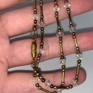 15 Inch Clear and Gold Handmade Beaded Necklace