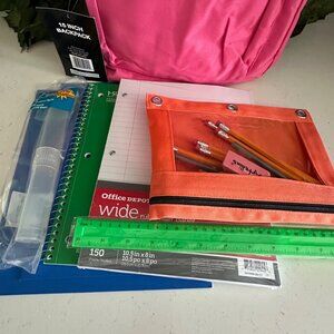 15 Inch Pink Backpack School Supply Kit With Notebook Pencils & Ruler