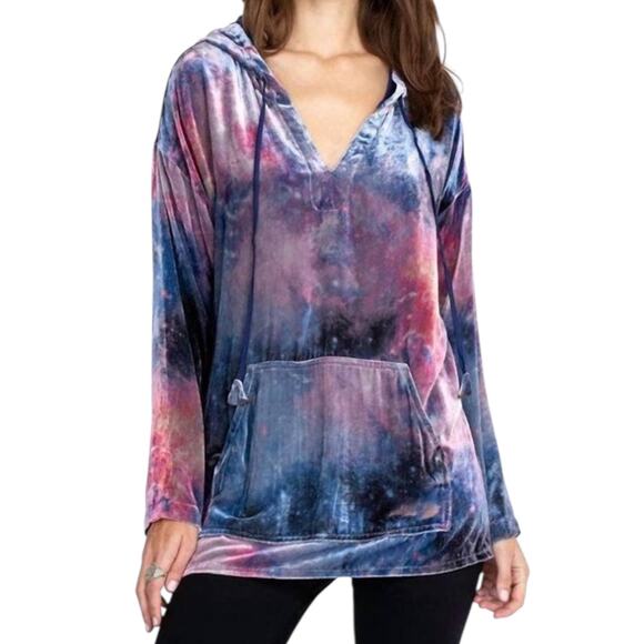 15. JOHNNY WAS Nova Velvet Relaxed Hoodie Multi Galaxy Print Size: XL