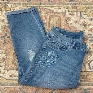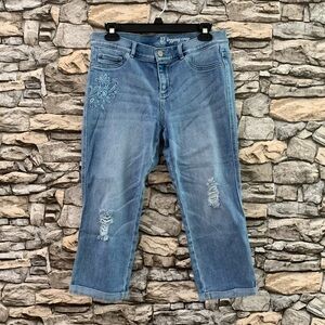 #15 NY&Co Distressed Embellished Legging Crop Capri Pants Blue Jeans Size 10