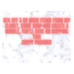 15% OFF 3 ITEMS OR MORE FROM MY CLOSET, COME SHOP AND CREATE A BUNDLE!