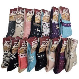 15 Pairs Women Winter Warm Socks, Lamb Wool Warm Hiking Walking Socks, Mix Print