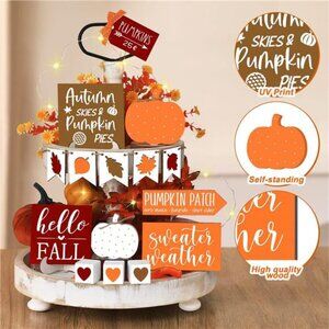 15 Pcs Fall Tiered Tray Decor Set, Wooden Signs & Gnomes for Thanksgiving Decor