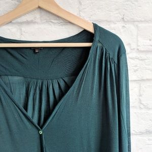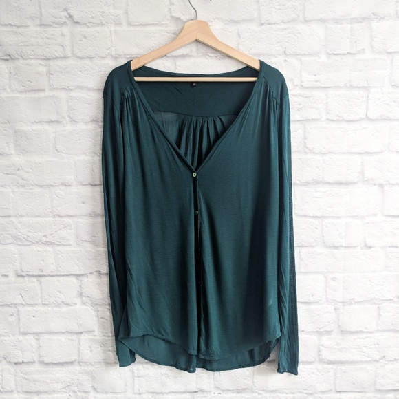 Teal sheer flowy button up tee by T. Babaton. Size small. 100% rayon. Excellent condition!