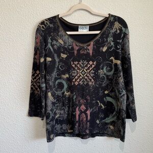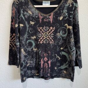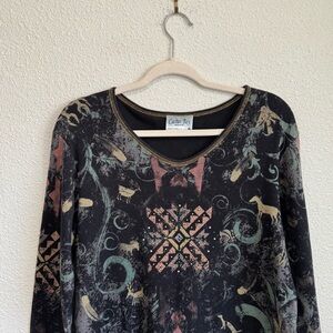 VTG Cactus Bay Western Cowgirl Annie Oakley Shirt Aztec Rhinestone Y2K Boho