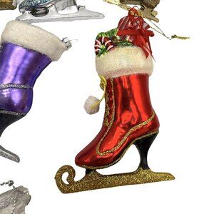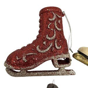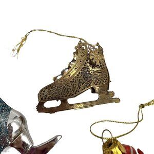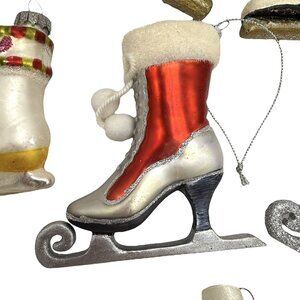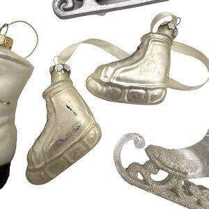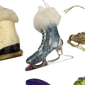 15 Vintage Ice Skates Skating Skater Ornaments Mixed Lot Blown Glass Plastic