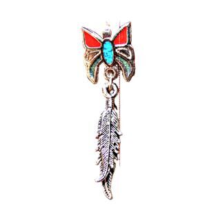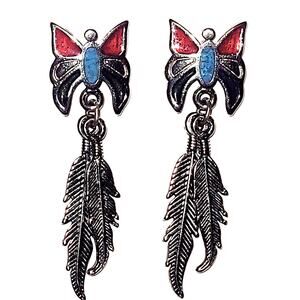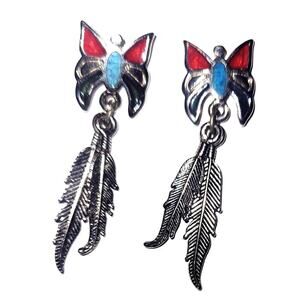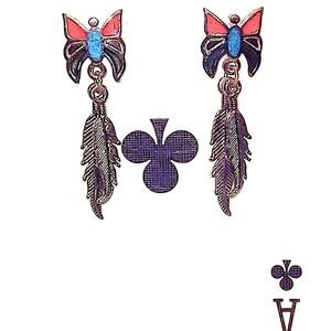 1.5" Vintage Signed Turquoise Coral Butterfly/Feather Earrings
