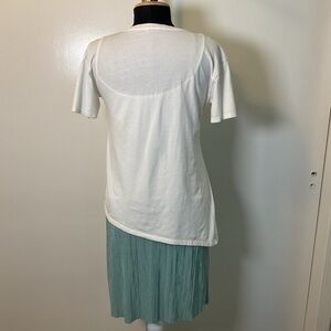 15. Zara White and Mint Green Asymmetrical Pleated Pencil Shirt Dress Size S