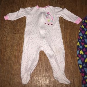 Like new. Washed and clean. No stains. My niece outgrew them. Very nice to wear after your baby has had a nice bath! 💚 $15 for both or $10 for each