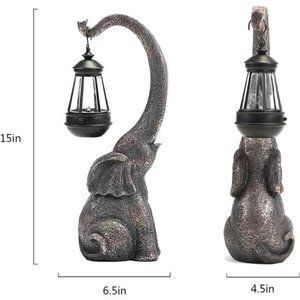 15 inch Outdoor Sculpture Figurine Statue Elephant Decor,Solar Garden Statues