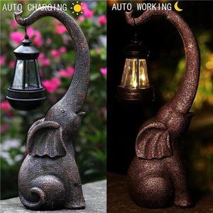🧿The solar elephant light decor comes with a solar powered light for outdoor lighting. The automatic solar powered light has a solar panel that absorbs sun light during the day to convert sunlight into electricity to recharge the AA Ni-MH battery (included). Solar power lights automatically turn on at night and turn off at dawn.