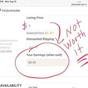 Poshmark seller fees are a flat $2.95 till you hit $15.