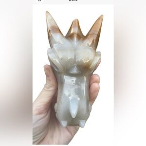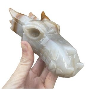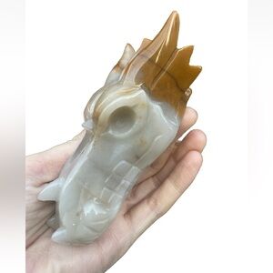 15 ounce agate Quartz Carved Dragon Head Skull Crystal Reiki