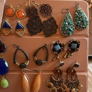 Various colors and sizes. All pierced and all costume from various styles and designers. Set of 15 pairs