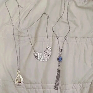#15 set of 3 fashion necklaces long beaded tassel geometric silver
