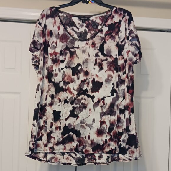 #150 3/$18 - Simply Vera Black/Red Short Sleeve Top Size XL